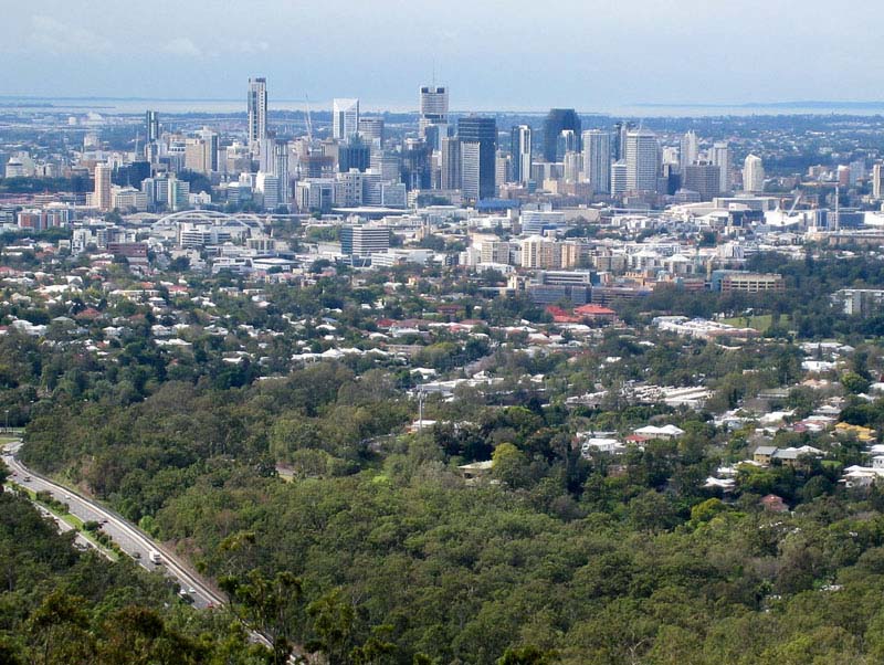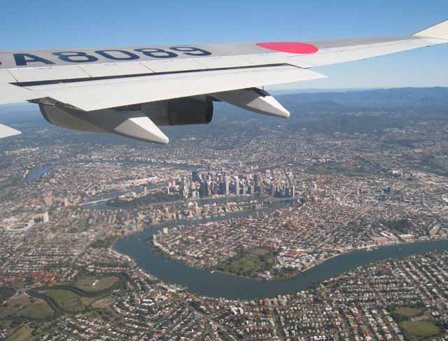 眼下はブリスベン市街 それにケアンズ沖のグレートバリアリーフの一部