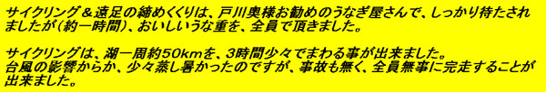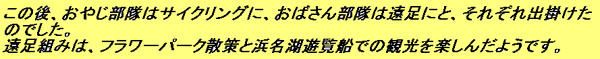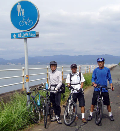 まさかの好天に恵まれ、最高のサイクリング&遠足となりました浜名湖へ向かう東名高速は、さほどの混雑も無かったのですが、時々フロントガラスに飛んでくる雨粒に内心は、雨に降られたら・・・!という不安とあせりでいっぱいでしたおまけに、木村さんを乗せた小川さんの車が道に迷い、気をもみながらの道案内しかし、やれやれと思って、ふと気がついたら、嘘みたいな気持ちのいい青空・・・・!!